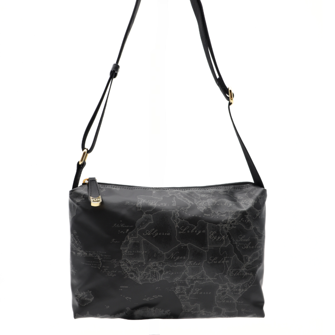 Borsa a tracolla Geo Soft di ALVIERO MARTINI 1^CLASSE. Realizzata in tessuto stampa Geo Black, con tracolla in nastro logato regolabile. Comparto unico con chiusura con cerniera e interno foderato.