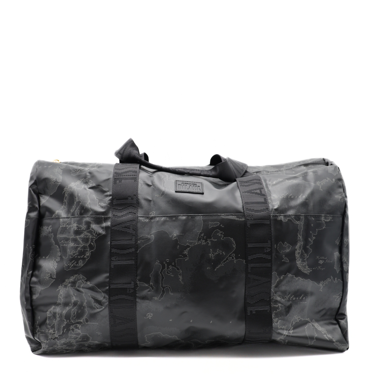 Borsone unisex di ALVIERO MARTINI 1^ CLASSE in tessuto stampato con cartina geografica Geo Black. Interno con unico comparto e chiusura con zip. Due manici in tessuto nero loggato. Borsetta in dotazione in tessuto Geo Black (21 x 16 x 5 cm)