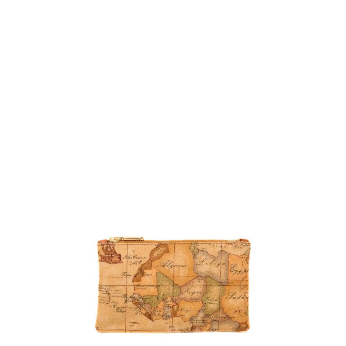Bustina in tessuto stampato con cartina geografica Geo Classic piatta, di forma rettangolare, chiusa con zip. Impreziosita dai dettagli in metallo dorato, è un accessorio di culto abbastanza capiente per contenere con stile il tuo nécessaire.
