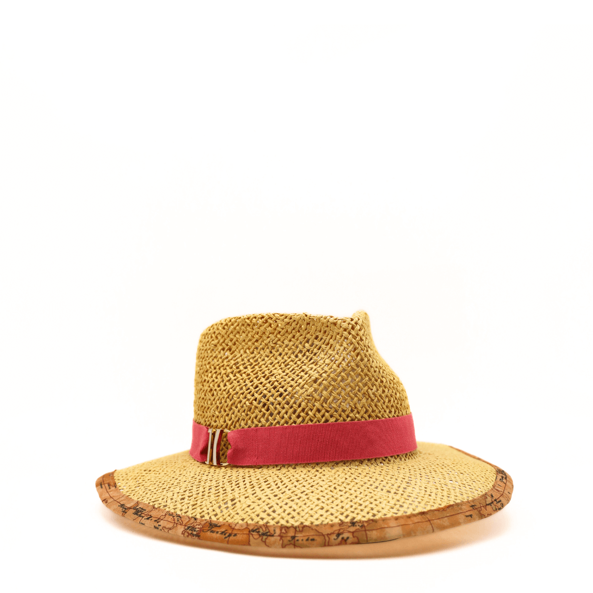 Cappello da donna di ALVIERO MARTINI 1^ CLASSE realizzato in paglia con bordino in tessuto geo classic e inserto rosa con logo.