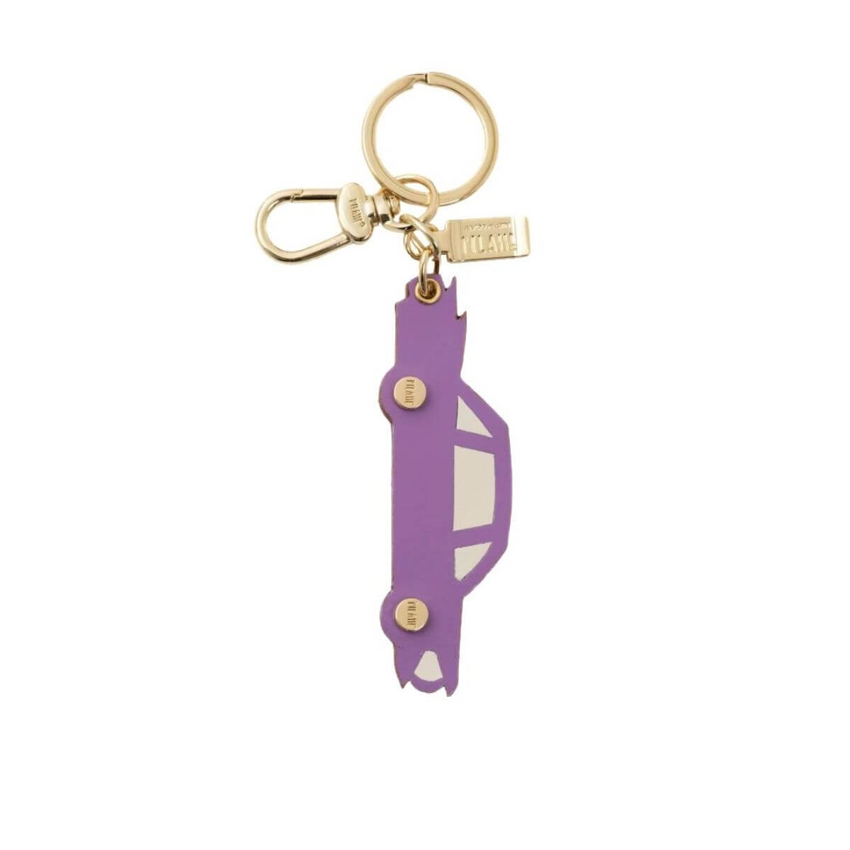 Portachiavi da donna di ALVIERO MARTINI 1^ CLASSE con cadillac lilla sul fronte e sul retro la stampa geo.