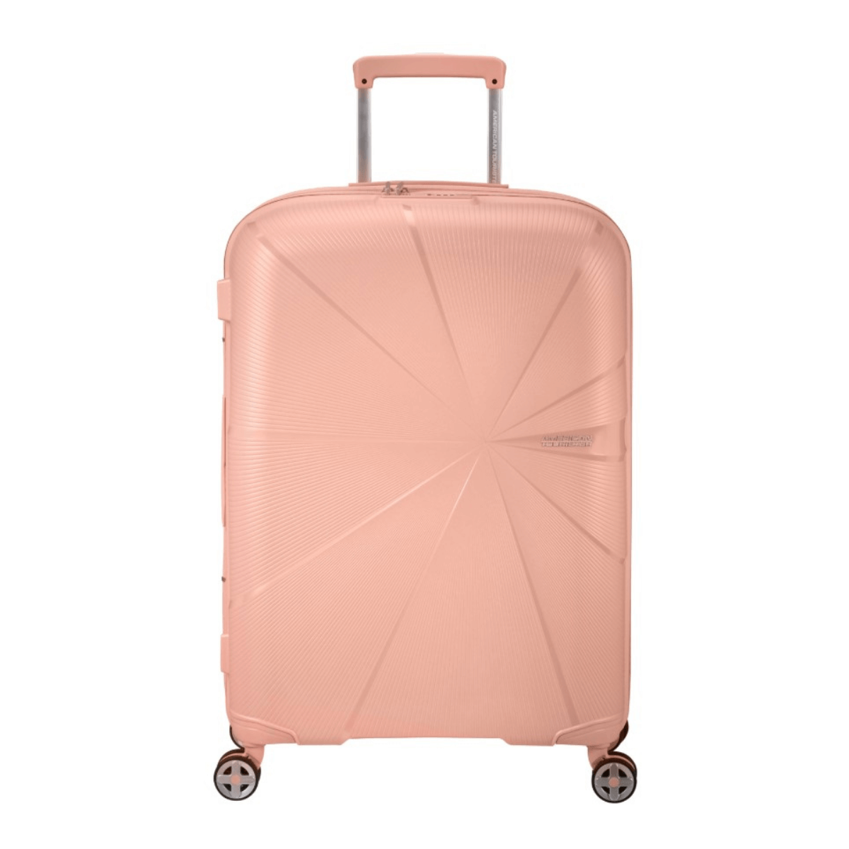 Trolley medio rigido, della linea STARVIBE di AMERICAN TOURISTER dal design unico e avanzate tecnologie color pesca. Realizzato in Polypropylene. Vano interno organizzato con divisorio e cinghie elastiche. Chiusura con combinazione e sistema TSA. Quattro ruote bidirezionali . Carrello bitubo. Valigia espandibile.