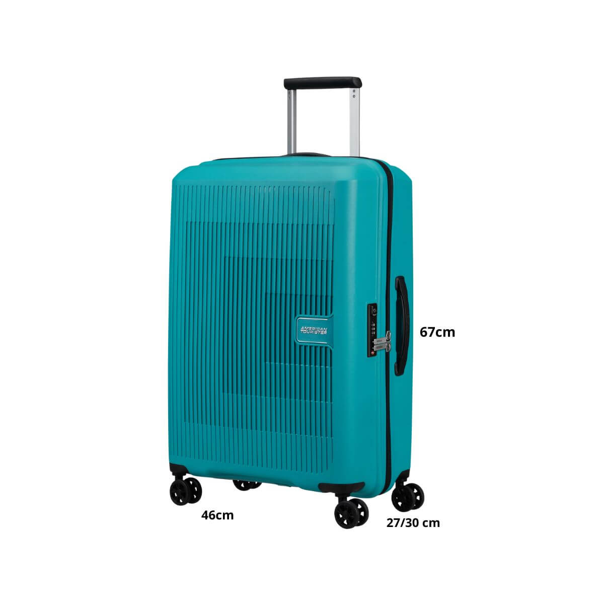 Trolley rigido, della linea AEROSTEP di AMERICAN TOURISTER dal design unico e avanzate tecnologie color turchese. Realizzato in Polypropylene. Vano interno organizzato con divisorio e cinghie elastiche. Chiusura con combinazione e sistema TSA. Quattro ruote bidirezionali. Carrello bitubo. Valigia espandibile.