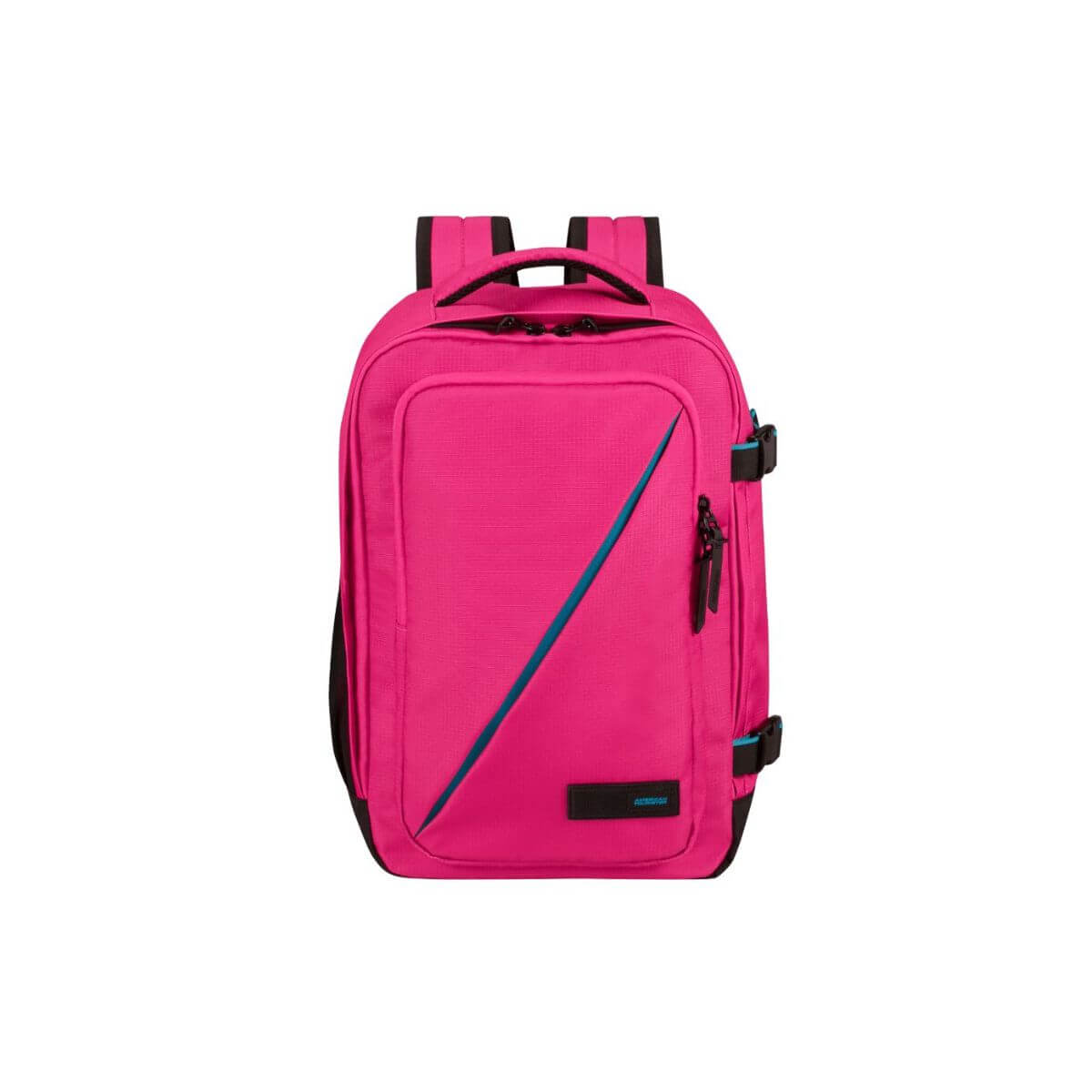 Zaino da viaggio di AMERICAN TOURISTER della linea TAKE2CABIN, realizzato in tessuto fuxia. Internamento composto da uno scomparto con ganci ferma abiti. Tasca frontale con porta accessori. Chiusura con zip. Tasca laterale con retina per mettere la tua borraccia. Gancio smart sleeve per facilitarti il trasporto con la tua valigia. Compatibile con Ryanair.