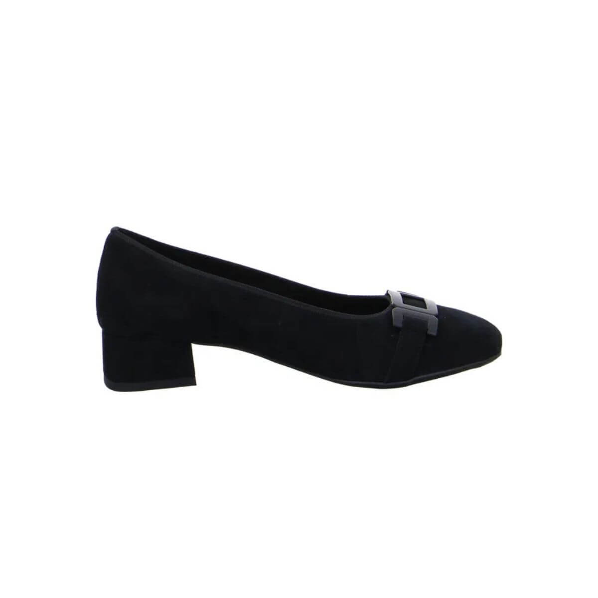 Aggiungi un tocco di eleganza al tuo guardaroba con le ballerine ARA in morbida pelle scamosciata nera, con catena nera. L'interno foderato in pelle soffice e il sottopiede high soft anatomico garantiscono comfort e traspirabilità. Il tacco rivestito in pelle blu conferisce un tocco di esclusività, mentre la suola in gomma flessibile e antiscivolo assicura stabilità.