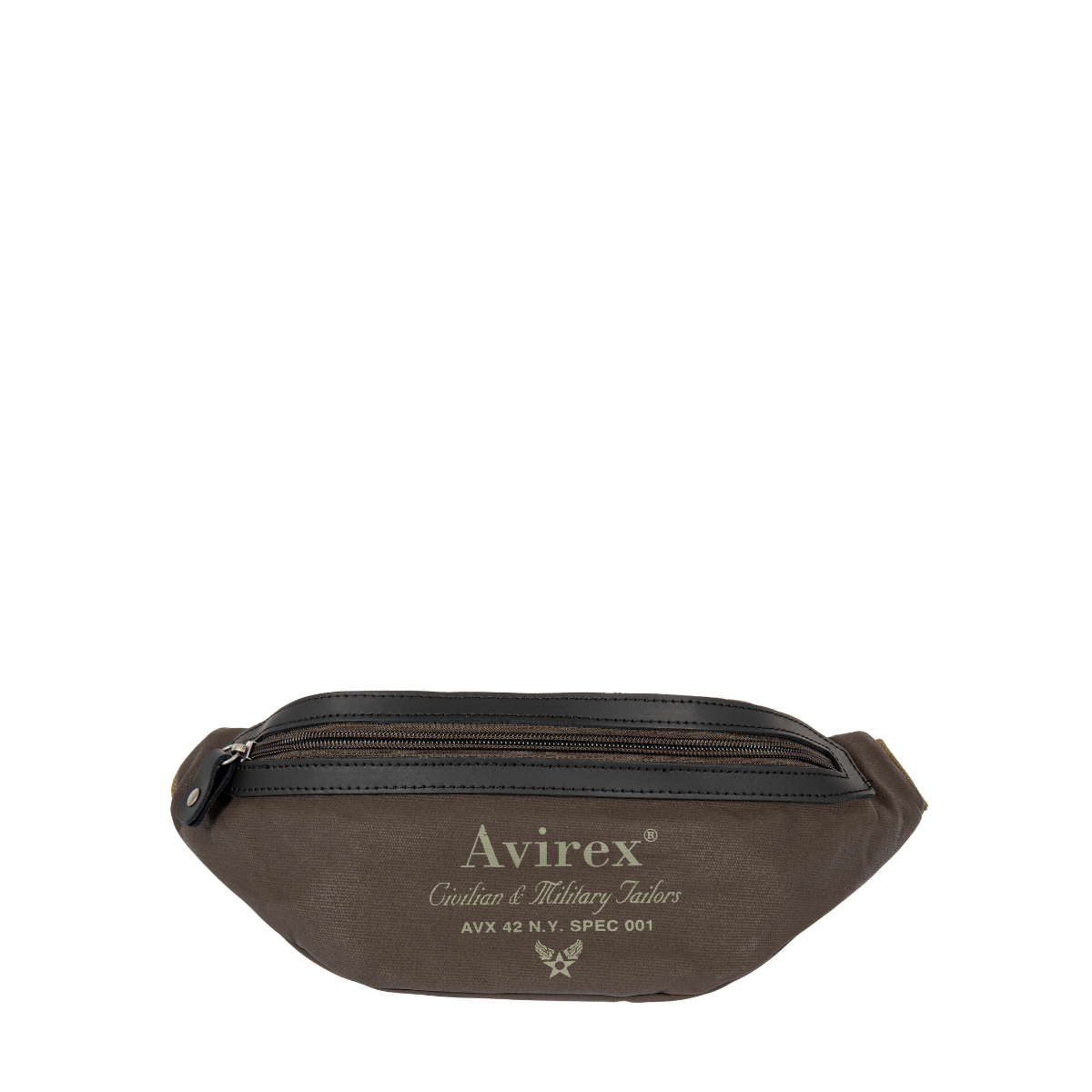 Marsupio da uomo di AVIREX realizzato in tessuto color fango. Interno unico comparto con tasche accessorie. Tracolla in tessuto verde militare regolabile. Chiusura con cerniera.