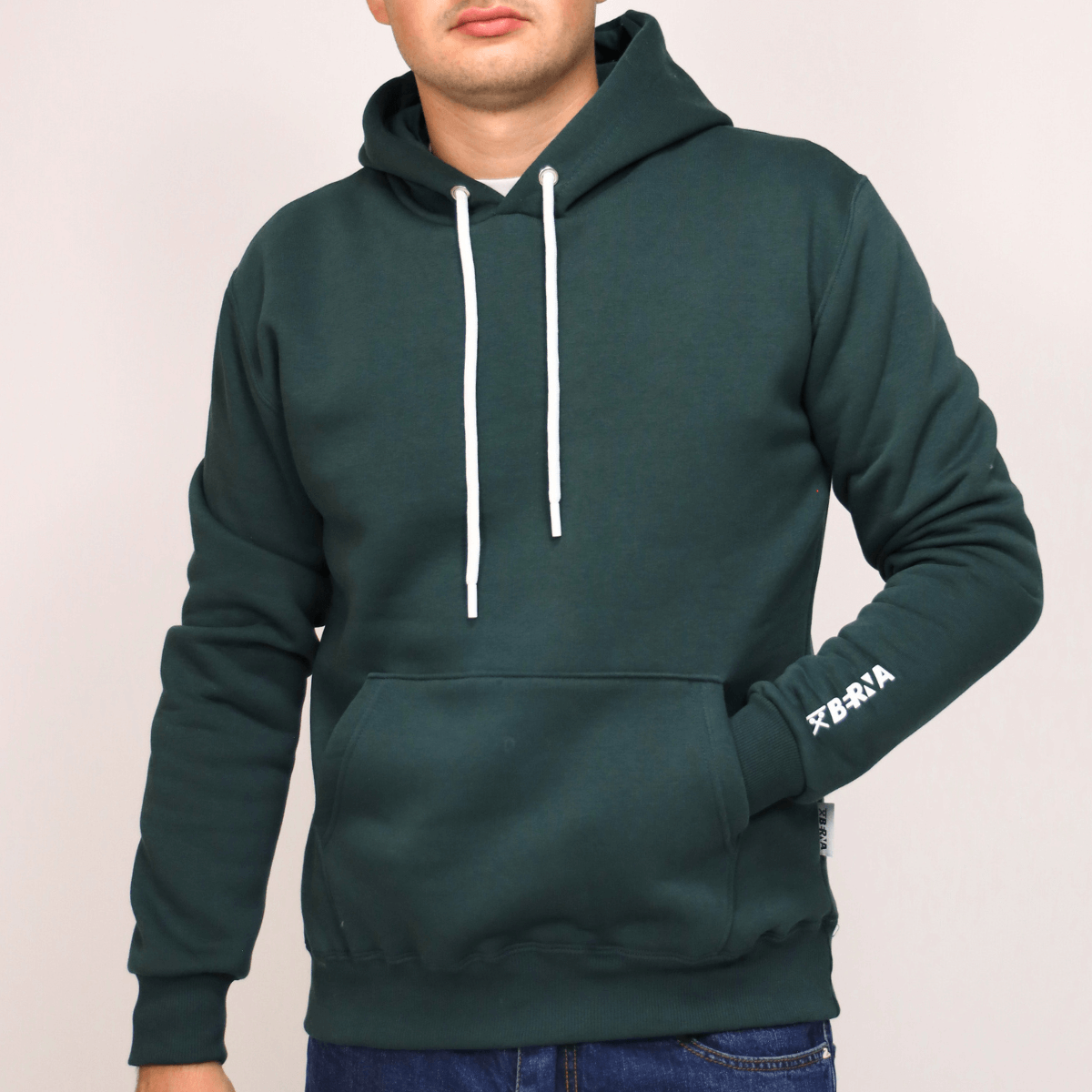 Felpa da uomo di BERNA realizzata in cotone verde con interno felpato e logo bianco sulla manica destra. Tasca grande frontale.