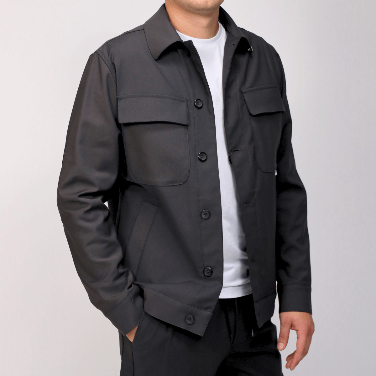 Giacca da uomo di BERNA realizzata in cotone color piombo con tasche laterali, chiusura con bottoni.