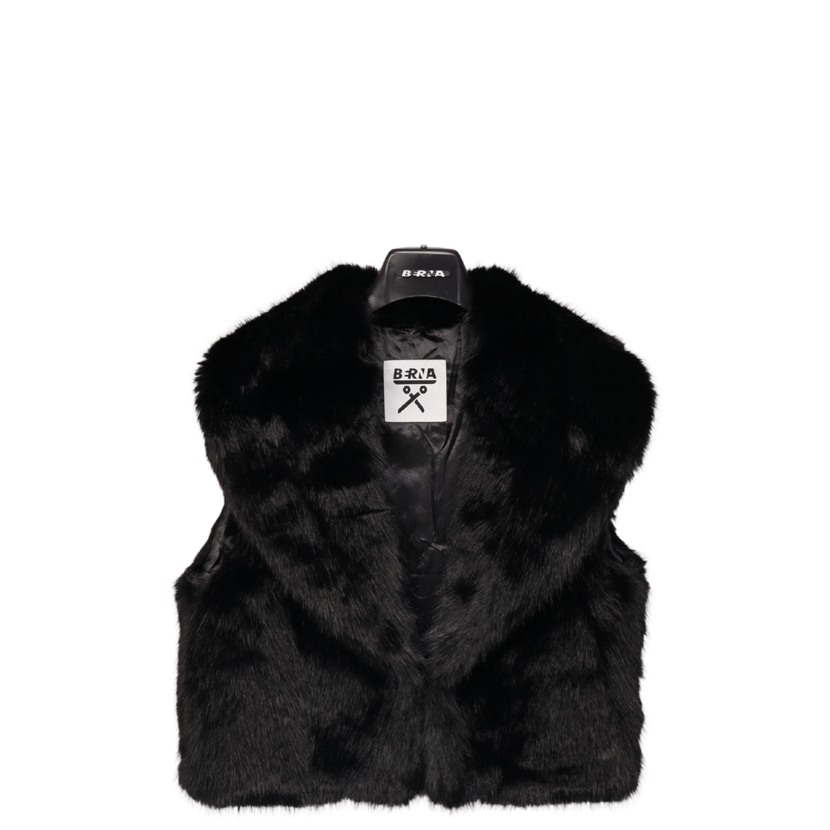 Gilet da donna di BERNA realizzato in tessuto effetto pelliccia nera. Chiusura ad incastro