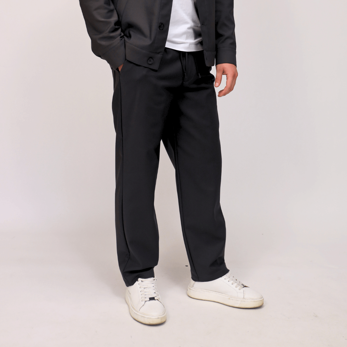 Pantalaccio da uomo di BERNA. Realizzato in cotone color piombo con chiusura con bottone e zip e possibilità di stringere con i lacci. Tasche anteriori e posteriori.