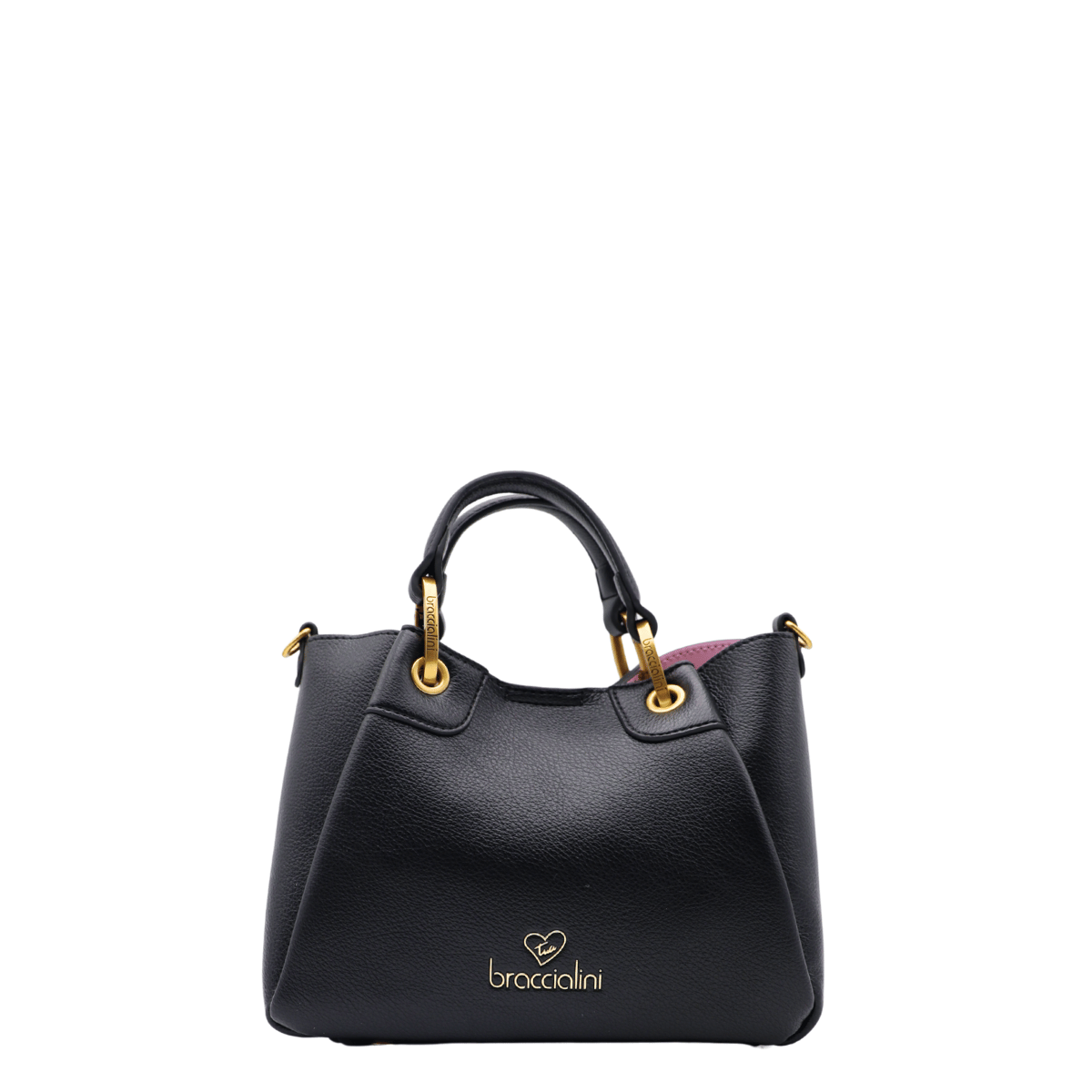 Borsa a mano di BRACCIALINI modello AMY realizzata in morbida ecopelle granata. Presenta un unico ampio scomparto, taschine interne e interno foderato in tessuto, pochette interna. Dotata di tracolla regolabile e removibile, presenta piedini. Chiusura con patta magnetica.