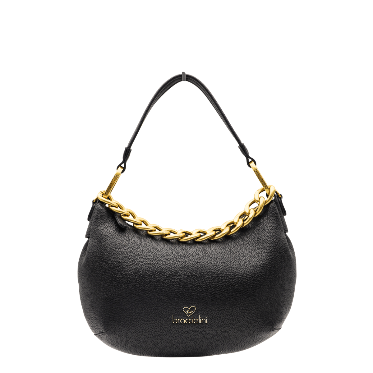 Borsa a spalla di BRACCIALINI modello BETH JEWELS realizzata in morbida ecopelle granata. Presenta un unico ampio scomparto, taschine interne e interno foderato in tessuto leopardato. Pratico manico removibile con ganci dorati brandizzati e tracolla in tono regolabile e removibile. Inserti dorati a contrasto. Arricchita da una catena decorativa. Chiusura con cerniera.