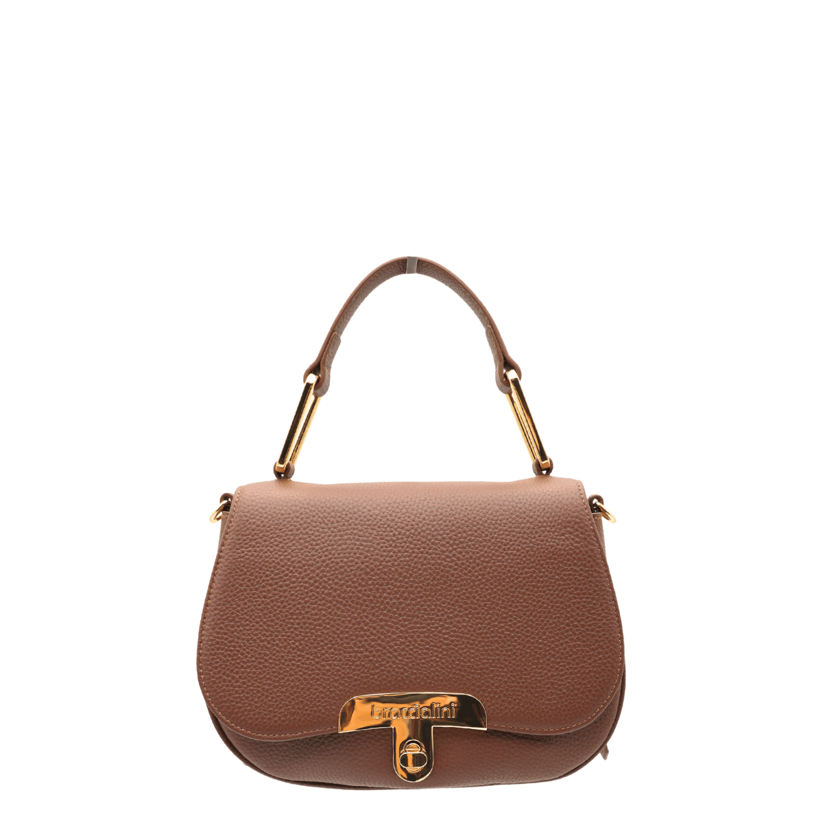Borsa a mano di BRACCIALINI modello MICHELLE realizzata in morbida pelle granata. Divisa in due scomparti, taschine interne e interno foderato in tessuto. Dotata di tracolla in tono regolabile e removibile, presenta inserti dorati a contrasto e una chiusura con bottoncino a incastro.