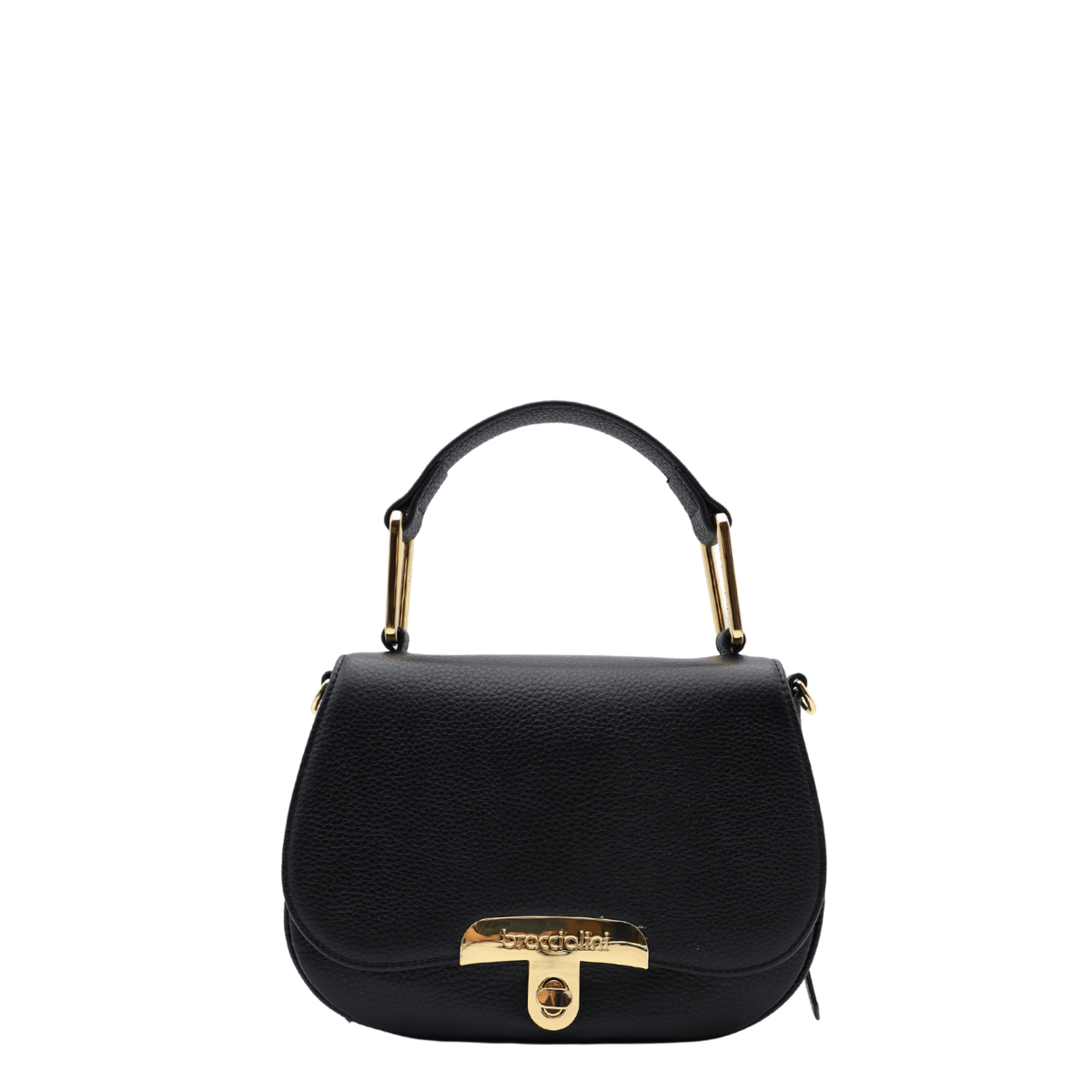 Borsa a mano di BRACCIALINI modello MICHELLE realizzata in morbida pelle granata. Divisa in due scomparti, taschine interne e interno foderato in tessuto. Dotata di tracolla in tono regolabile e removibile, presenta inserti dorati a contrasto e una chiusura con bottoncino a incastro.