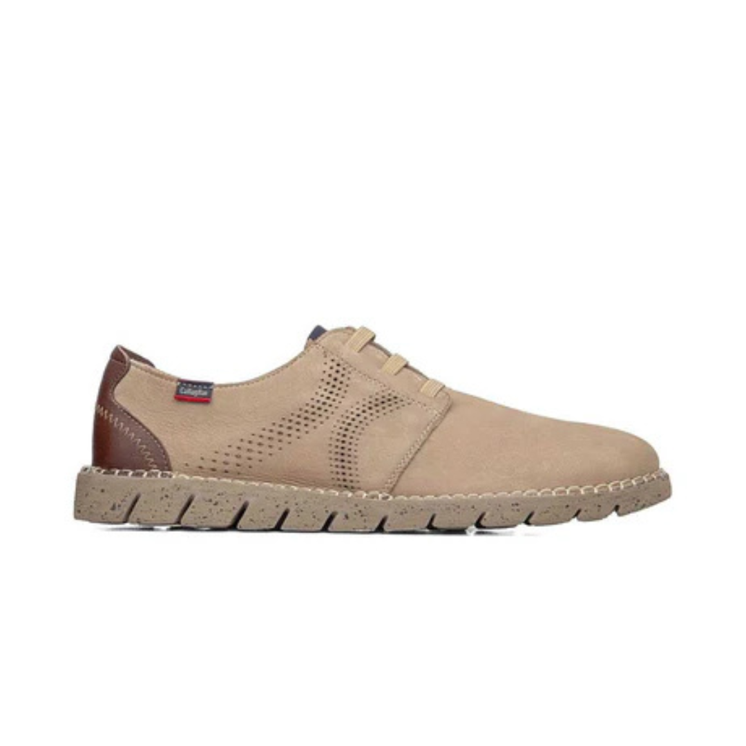 Sneaker da uomo di CALLAGHAN realizzata in morbida pelle nabuk, con fodera in microfibra traspirante e soletta imbottita, non estraibile. La tomaia presenta delle cuciture a vista, realizzate a mano. Suola di altezza 3 cm in gomma leggera e chiusura con laccio elastico. Modello progettato per avere la sensazione di camminare scalzi.