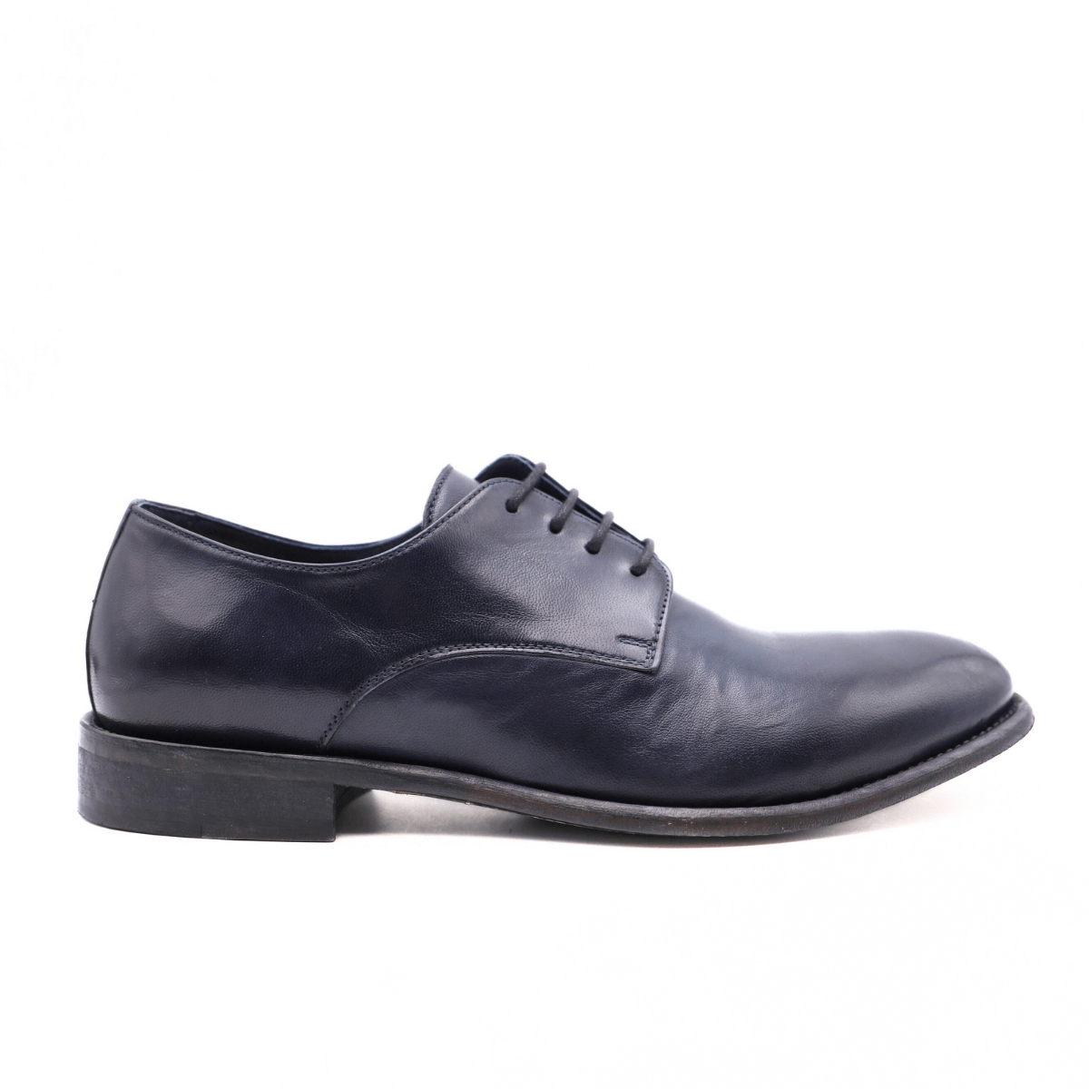 Scarpa, elegante, stringata da uomo di CALPIERRE. Tomaia realizzata in pelle blu, modello derby, con cuciture a vista. Interno foderato e sottopiede in pelle non removibile. Suola in gomma e cuoio. Chiusura con laccio fino.