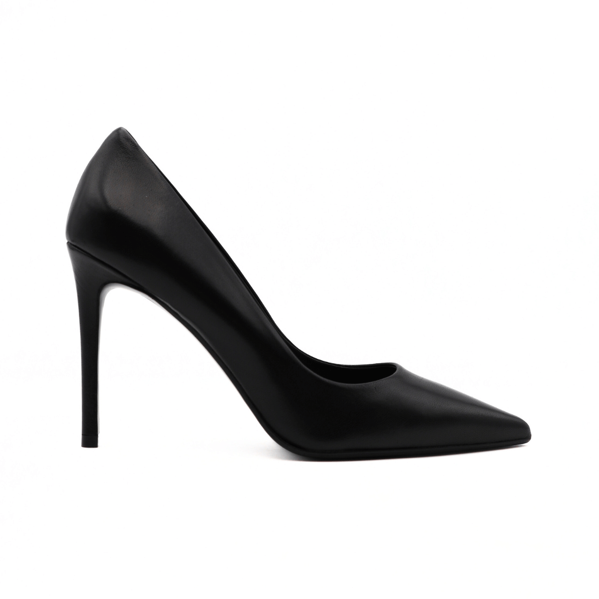 Décolletté nera di CHANTAL 1962 in pelle con tacco a stiletto di 10 cm. Suola in cuoio e gomma.