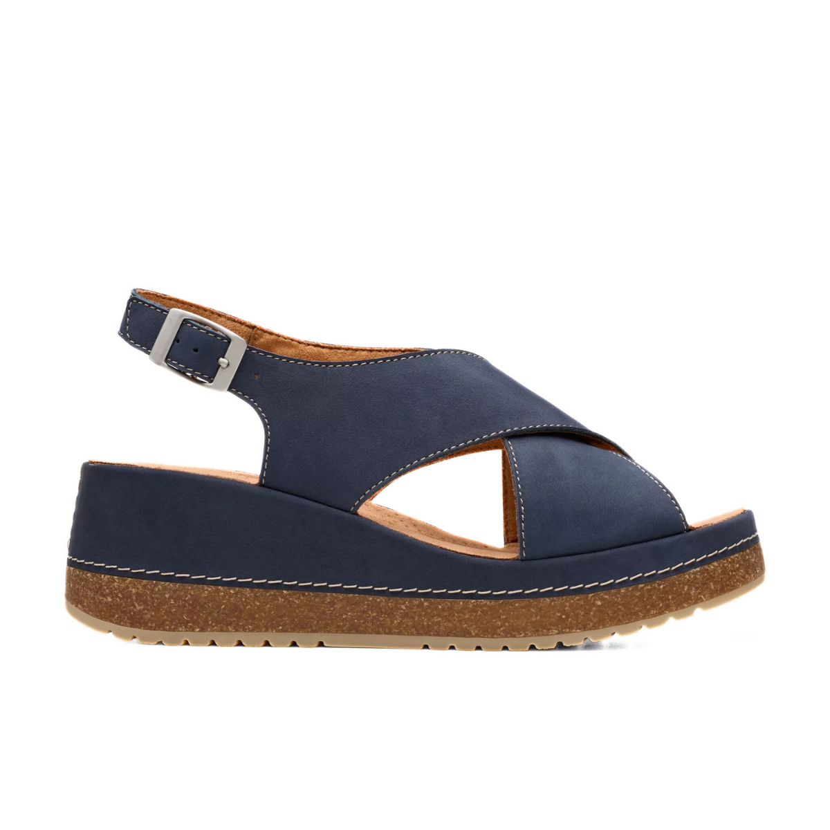 Il sandalo di CLARKS, modello Kassanda Step combina comfort e materiali di alta qualità. Realizzato in nabuk blu navy, questo profilo a zeppa con cinturini presenta il nostro plantare Contour Comfort e una suola aderente che rende ogni movimento sicuro – dai fine settimana tranquilli alle fughe improvvisate in città.