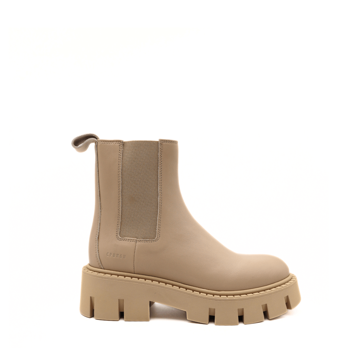 Chelsea boot da donna di COPENHAGEN realizzato in morbida pelle crema con suola platform con tacco 5 cm tono su tono. Interno e sottopiede, estraibile, foderati in pelle. Pratico e comodo da infilare grazie ai due elastici.
