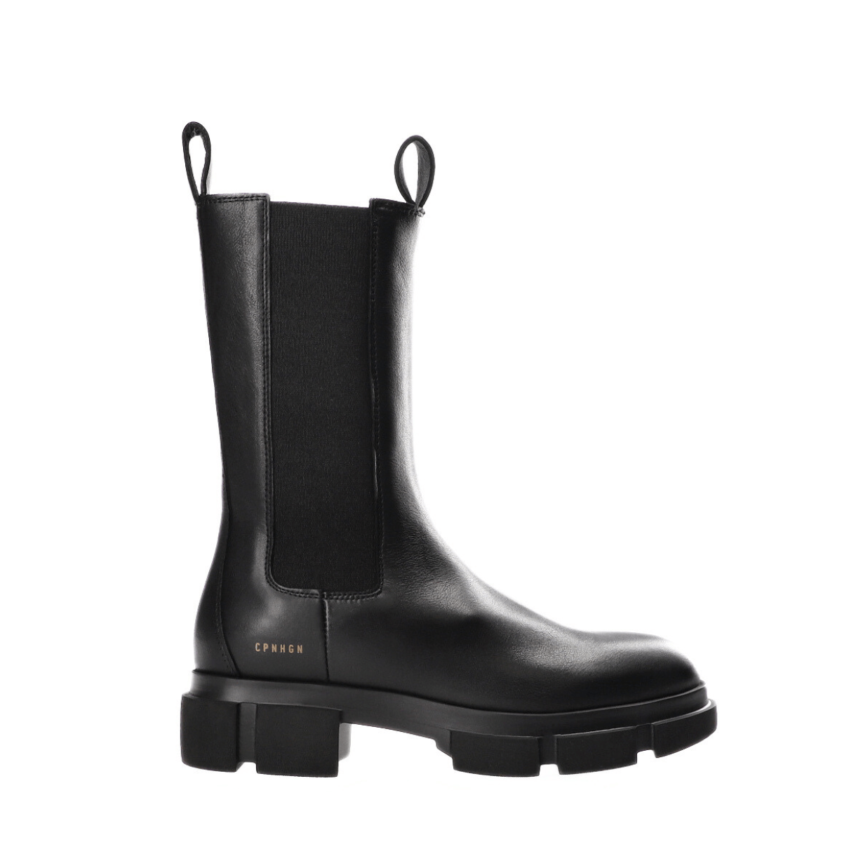 Chelsea boot da donna di COPENHAGEN realizzato in morbida pelle nera. Interno e sottopiede, estraibile, foderati in pelle. Pratico e comodo da infilare grazie ai due elastici.