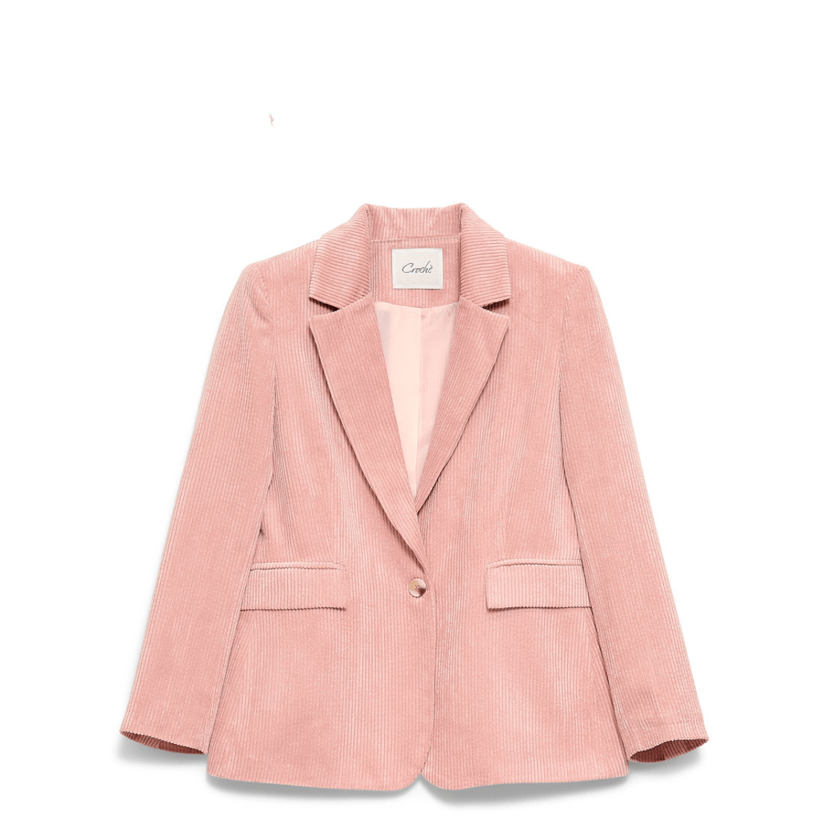 Giacca di CROCHÈ dal taglio sartoriale, realizzata in tessuto effetto velluto a costine. Composizione: 88% poliestere, 11% poliammide, 1% elastane. Vestibilità regolare.