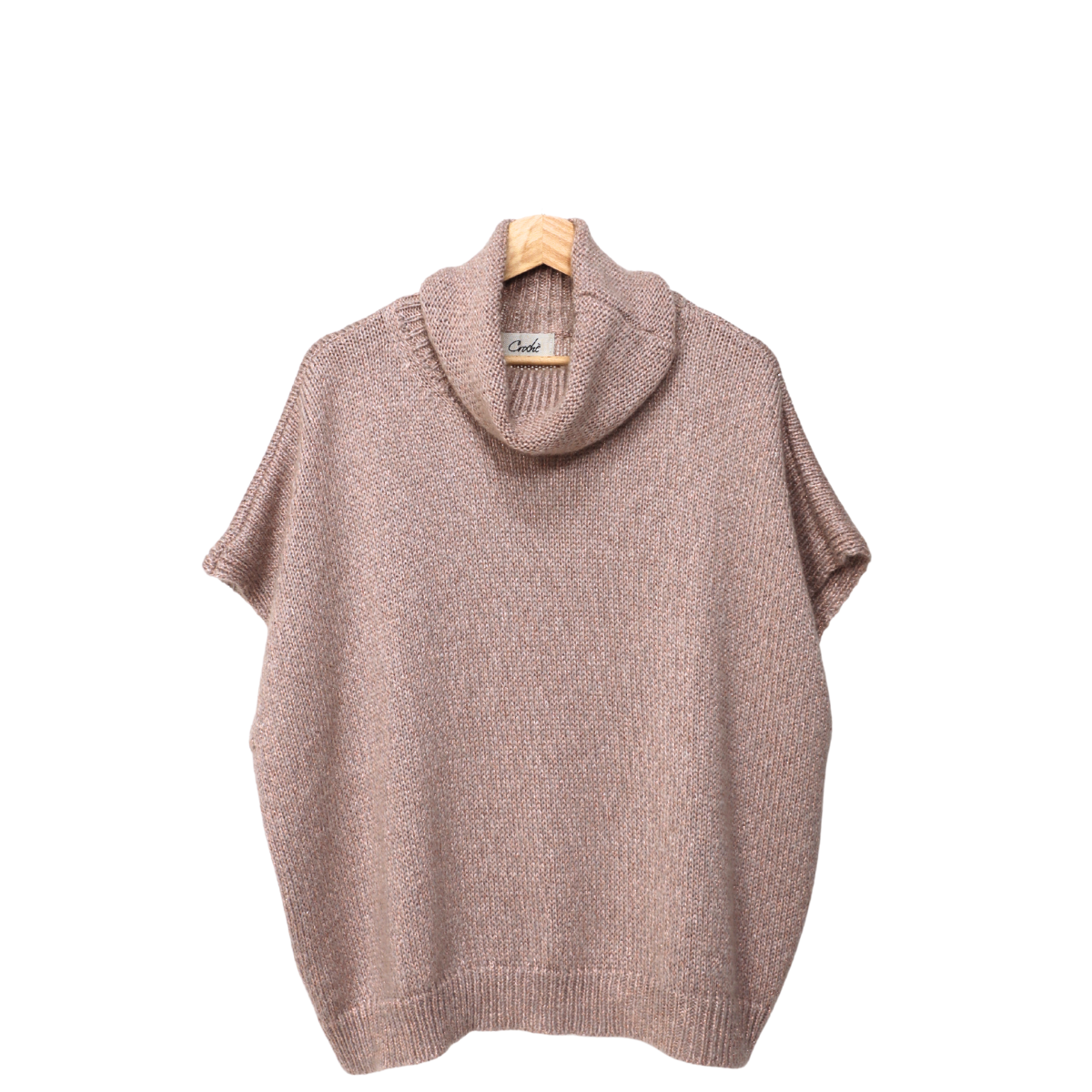 Maglione kimono di CROCHÈ realizzata in tessuto intrecciato rosa. Dotata di ampie maniche corte, vestibilità comoda.