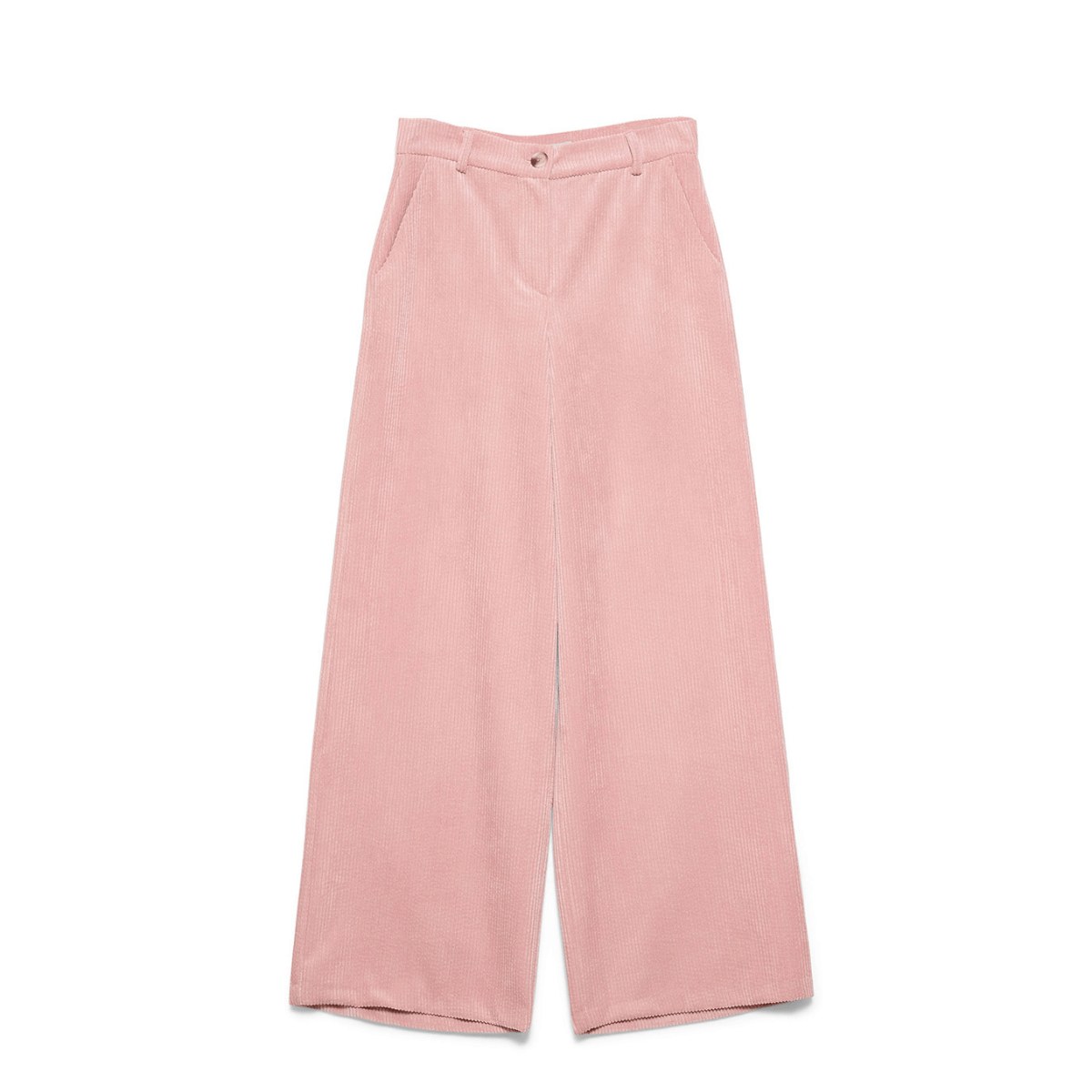 Pantalone di CROCHÈ dal taglio sartoriale, a palazzo, realizzato in tessuto effetto velluto a costine. Presenta due tasche frontali regolari e due taschine finte sul retro. Dotato di passanti. Composizione: 88% poliestere, 11% poliammide, 1% elastane. Vestibilità regolare.