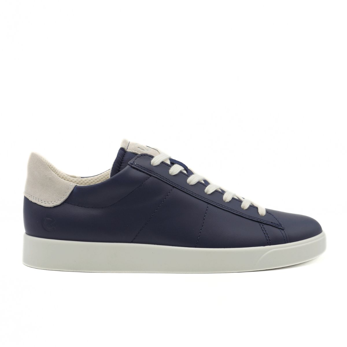 Sneakers da uomo di ECCO, realizzata in pelle blu con tallone in camoscio bianco. Interno e sottopiede foderati in tessuto. Suola in gomma platform (2.5 cm). Calzatura molto comoda e morbida.