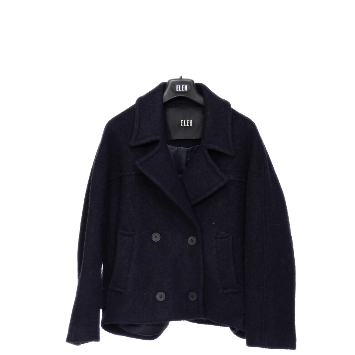 Cappotto di ELEH dal design classico e pulito, realizzato in un'elegante tonalità di blu notte. Il modello presenta un taglio corto e chiusura doppiopetto.