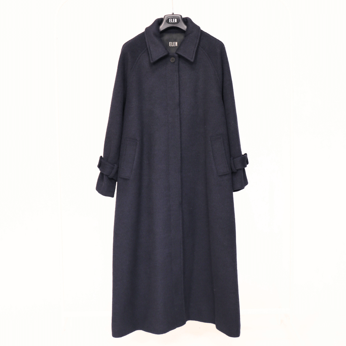Cappotto lungo di ELEH caratterizzato da un taglio morbido e raffinato di colore blu notte.