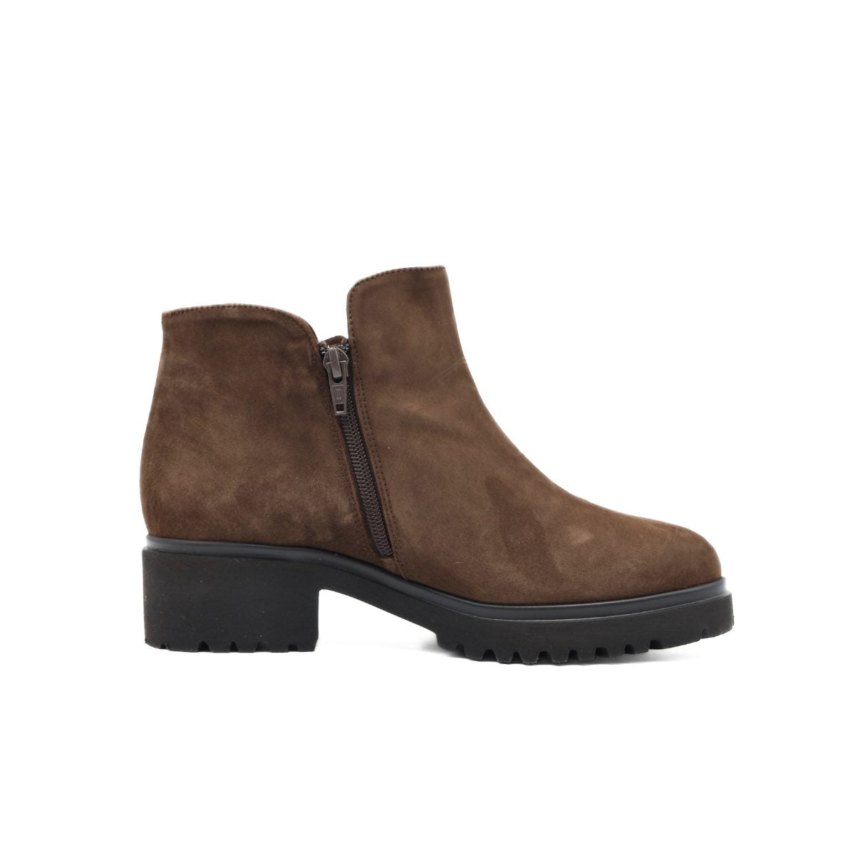 Aggiungi un tocco di praticità al tuo guardaroba con lo stivaletto di ÈLITE TOMASI. Realizzato in pelle scamosciata color testa di moro, queste scarpe si distinguono per la chiusura con doppia zip per una calzata facile e veloce. Interno e sottopiede, estraibile, entrambi foderati in pelle. E per un'andatura comoda e ammortizzata, la suola in gomma è l'ideale. (altezza tacco: 4.5)