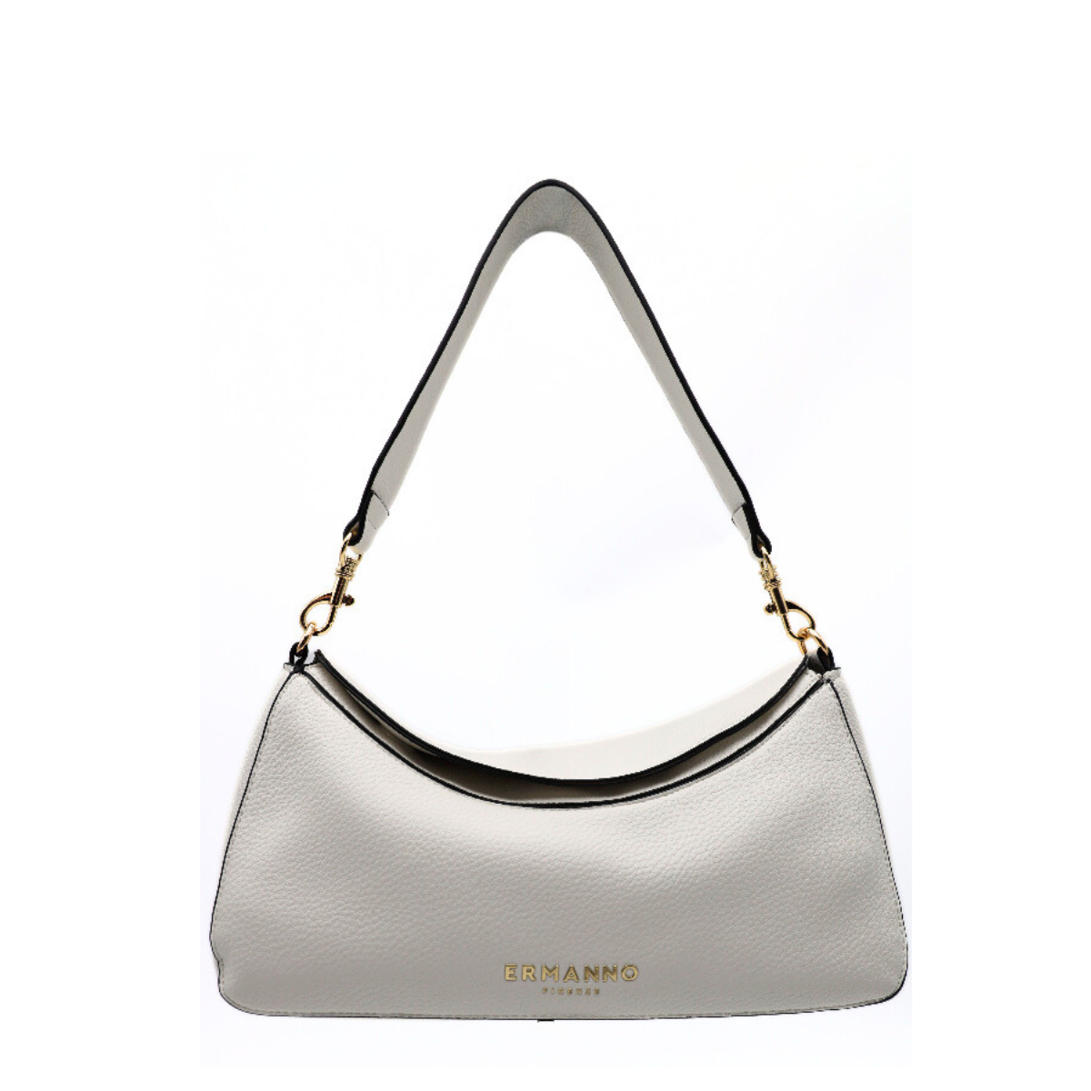 Borsa, modello TIFFANY forma baguette, di ERMANNO SCERVINO realizzata in morbida ecopelle bottalata bianca. Portabilità a spalla. Chiusura con doppia patta magnetica e unico comparto interno. Tracolla regolabile e removibile.
