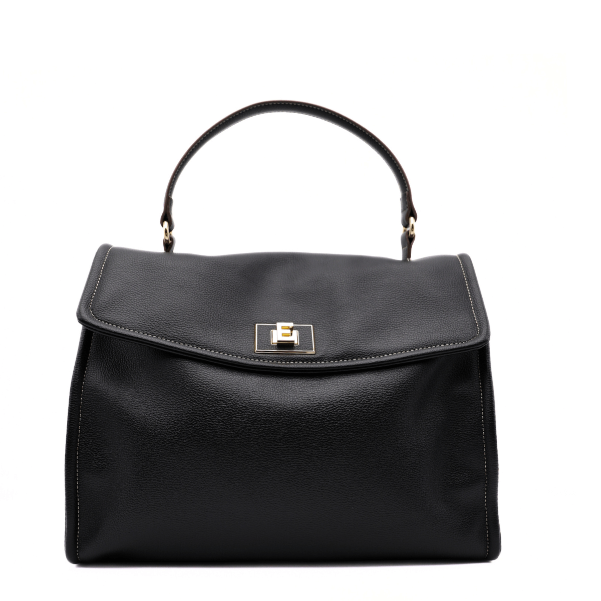 Borsa, modello TREASURE di ERMANNO SCERVINO realizzata in morbida ecopelle bottalata nera. Portabilità a spalla. Chiusura a incastro e unico compartimento interno.