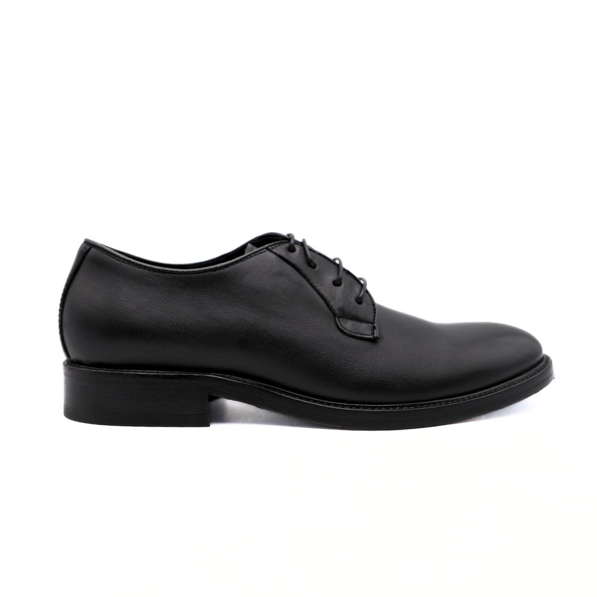 Stringata da uomo modello derby di F.LLI RENELLA, realizzata in pelle nera. Interno e sottopiede, estraibile, foderati in pelle. Chiusura con laccio. Suola in gomma e cuoio.