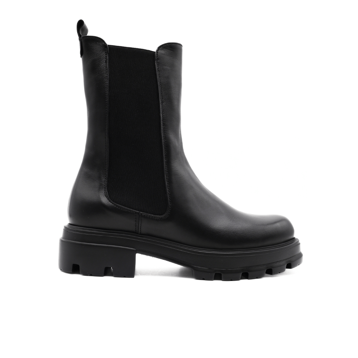 Beatles da donna di FRANCO FEDELE. Tomaia in pelle nera, con inserti elastici per una calzata facile e veloce. Internamente foderata e sottopiede in pelle. Suola in gomma extralight, tacco esterno 3 cm.