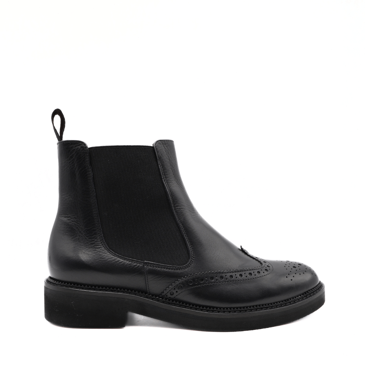 Stivaletto, modello beatles da donna di FRANCO FEDELE. Tomaia in pelle nera con puntale a coda di rondine. Internamente foderata e sottopiede in pelle. Suola in gomma extralight, tacco esterno 3.5 cm.