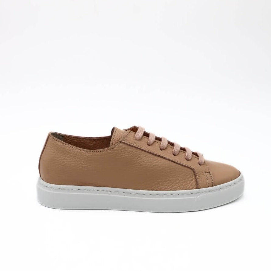 Pulita e semplice sneaker di FRANCO FEDELE. Realizzata in pelle bottalata color nude. Internamente sfoderata, plantare interno sagomato e estraibile. Suola in gomma antiscivolo. Chiusura con lacci.