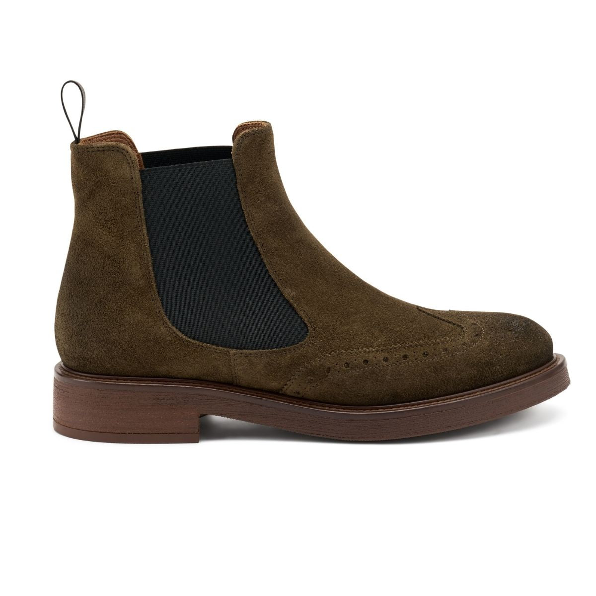 Tradizionale beatles di FRAU d'ispirazione british, realizzato in pelle scamosciata con finish ombreggiato e rifinito dall'iconico disegno all'inglese a coda di rondine. Interno foderato in pelle e sottopiede non estraibile. Suola in gomma.