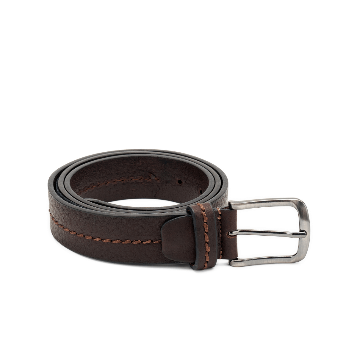 Cintura da uomo di FRAU in pelle marrone con cuciture a vista. Chiusura con fibbia in acciaio.