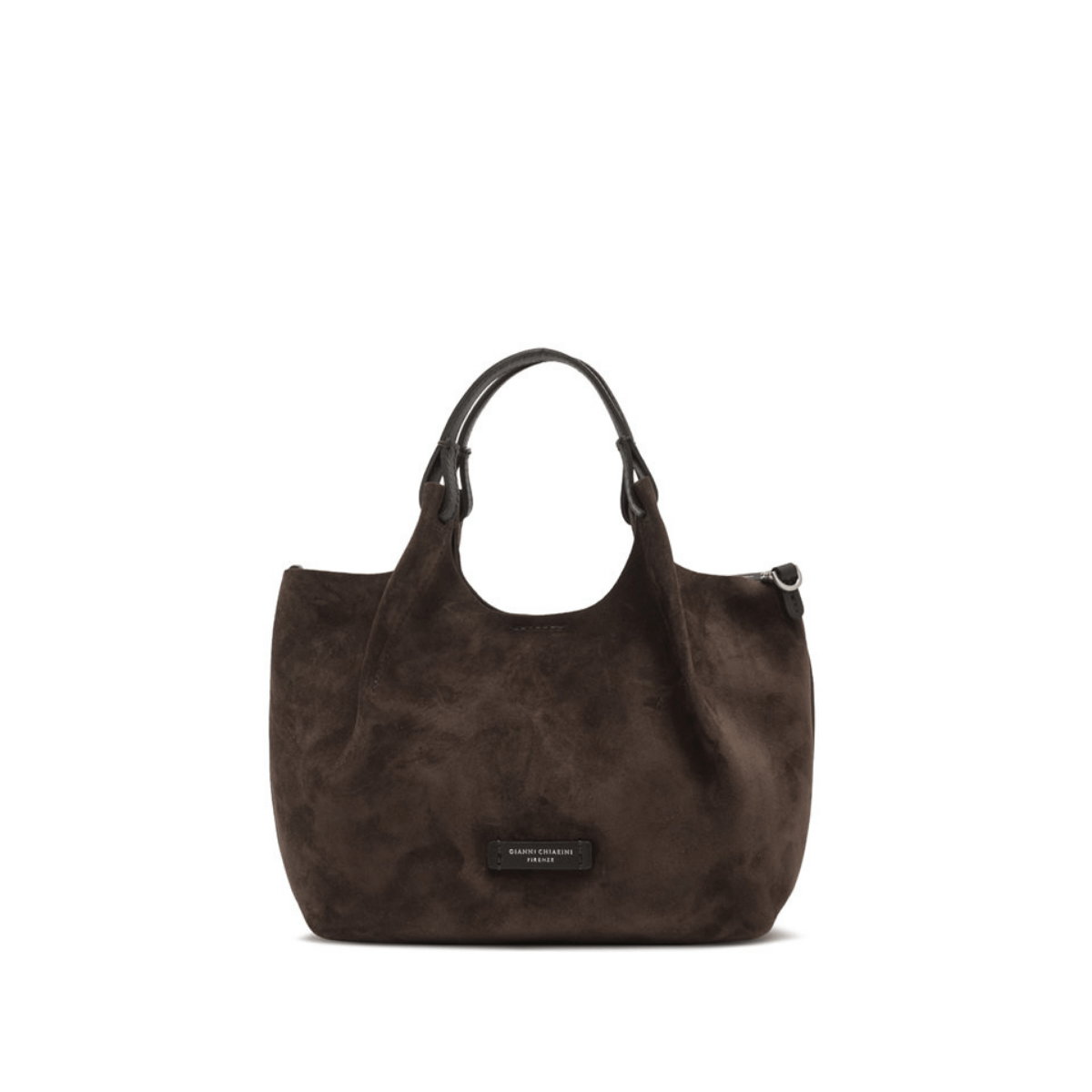 DUA di GIANNI CHIARINI è l'icona del brand e si distingue per un design semplice, ma contemporaneo. Realizzata in morbida pelle scamosciata, presenta un monoscomparto sfoderato con pochette interna, profili superiori in pelle martellata e doppi manici in tono. Pratica ed essenziale, è la borsa ideale per completare ogni donna. Può essere portata a mano o crossbody grazie alla tracolla removibile di cui è dotata.
