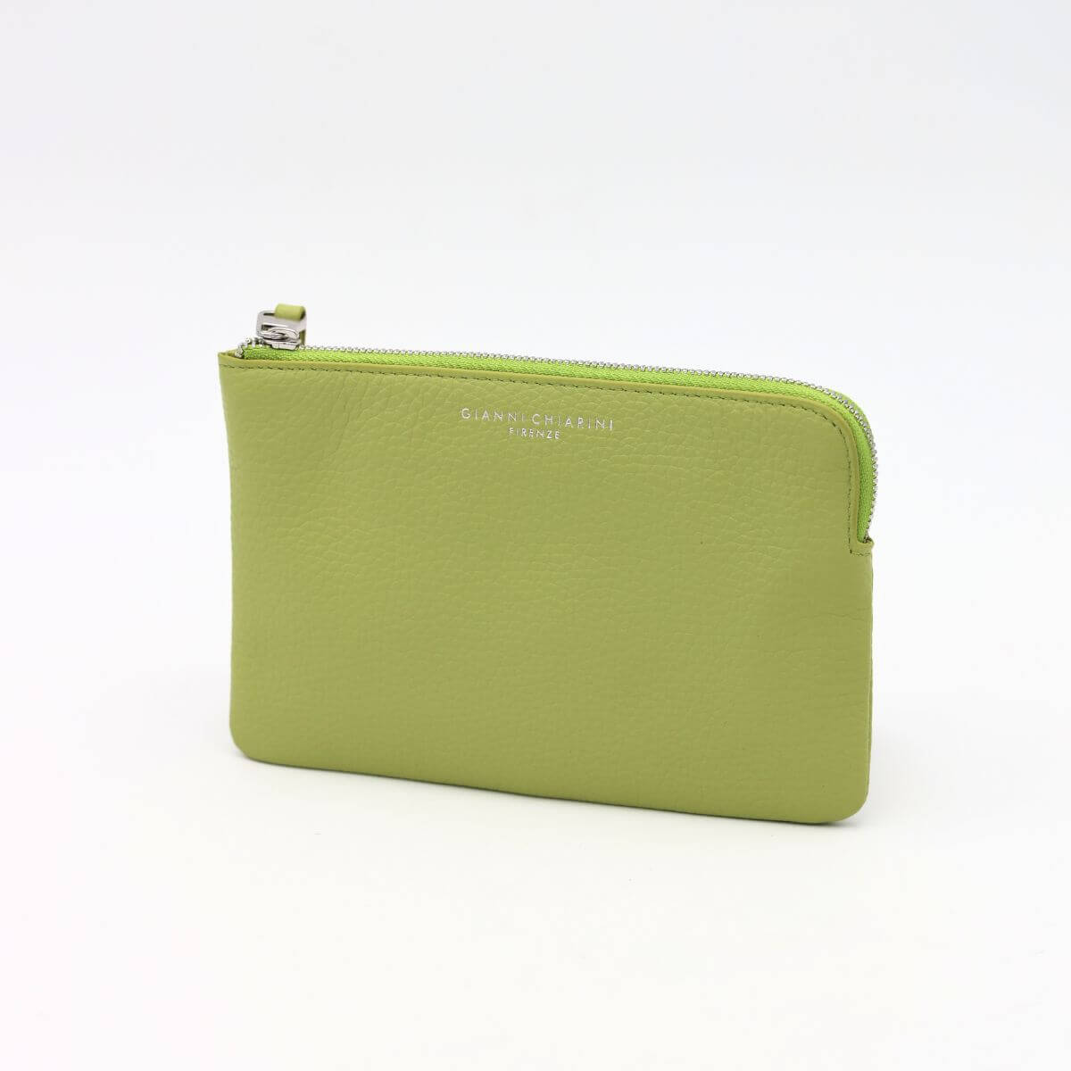 Il portafoglio Dollaro di Gianni Chiarini è realizzato in morbida pelle martellata. Presenta una chiusura con zip e tira zip in tono. Al suo interno varie tasche piatte multiuso e una catenina con moschettone per poterlo agganciare alla borsa.