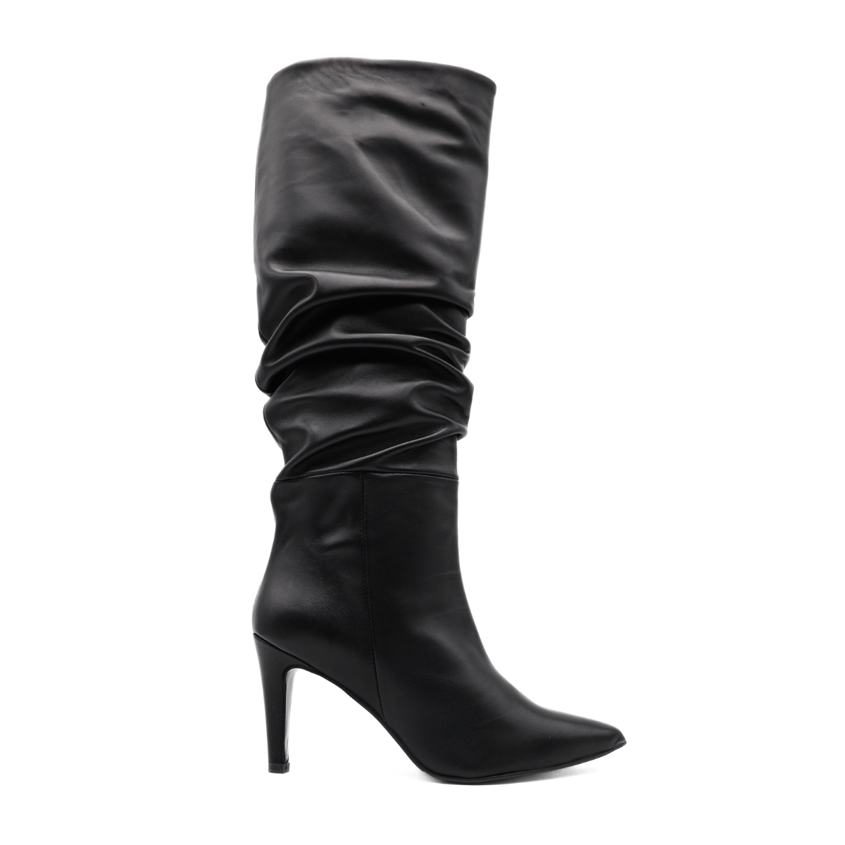 Stivale da donna di GIANNI CRASTO. Realizzato in pelle nera con gambale arricciato. Interno e sottopiede in pelle. Suola in gomma.