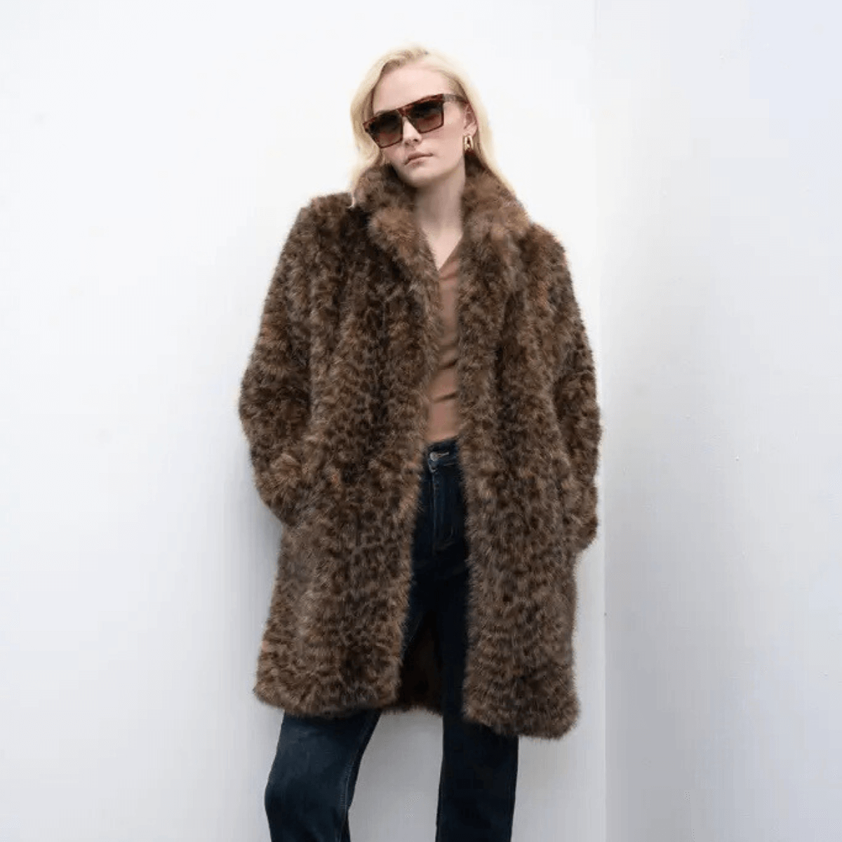 Cappotto in pelliccia ecologica con stampa animalier di GOA GOA.
