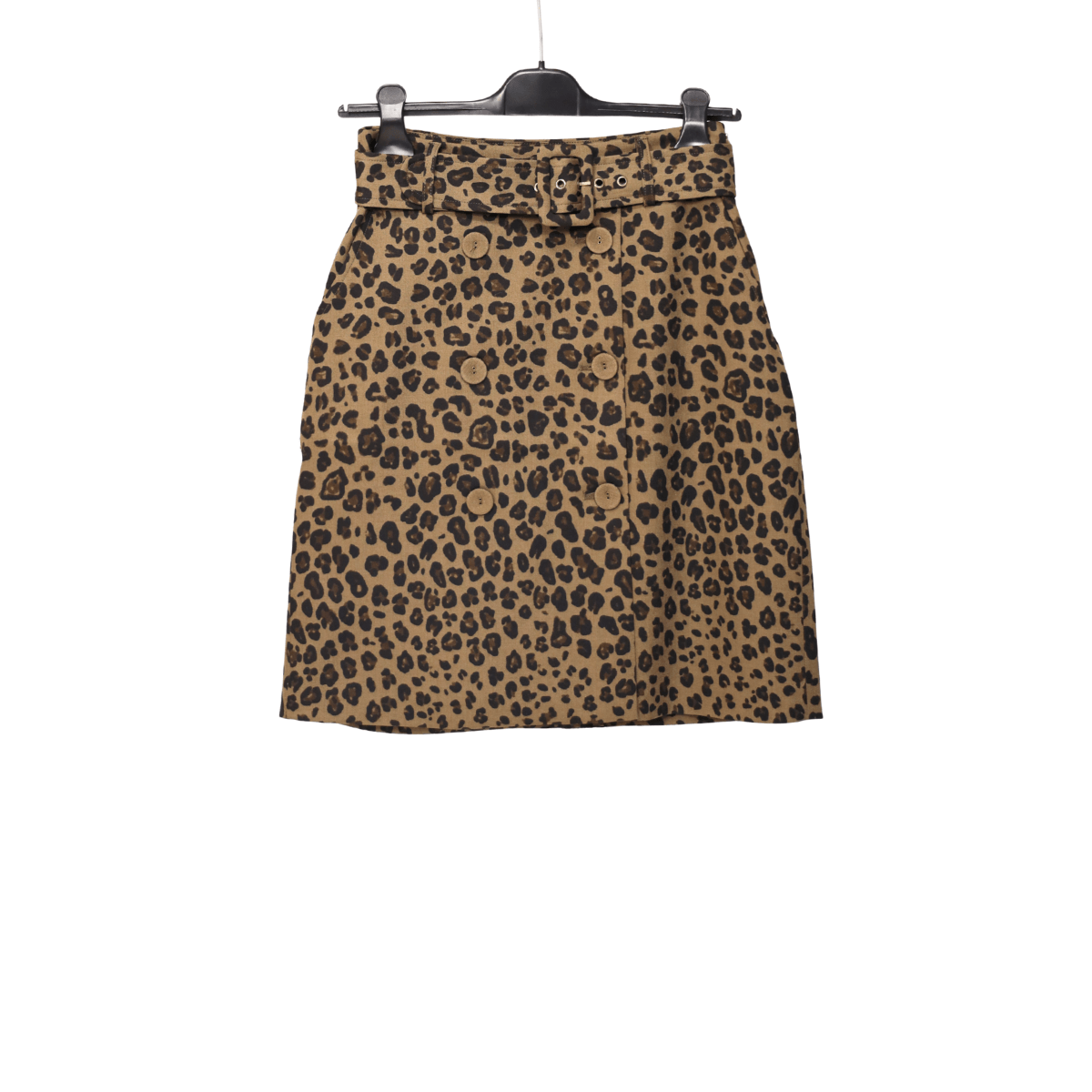 Minigonna di GOA GOA realizzata in tessuto maculato con cintura in dotazione, chiusura con bottoni.