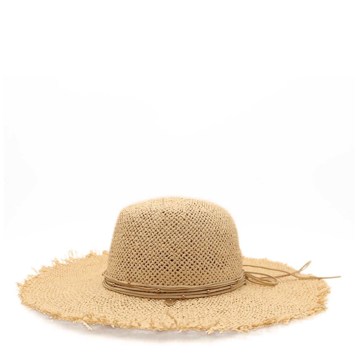 Cappello di HAT YOU in effetto raffia con laccio beige.