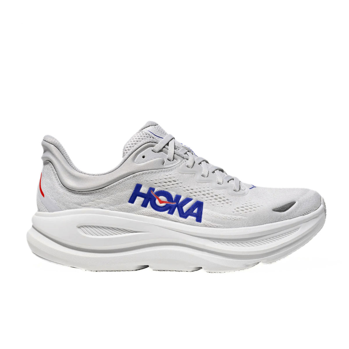 Sneakers di HOKA modello Bondi 9, offrono massima ammortizzazione con stack rialzato e un'intersuola in schiuma di ultima generazione. Dotate di collarino sagomato 3D e tomaia strutturata in tessuto con traspirabilità variabile. Dettagli catarifrangenti.