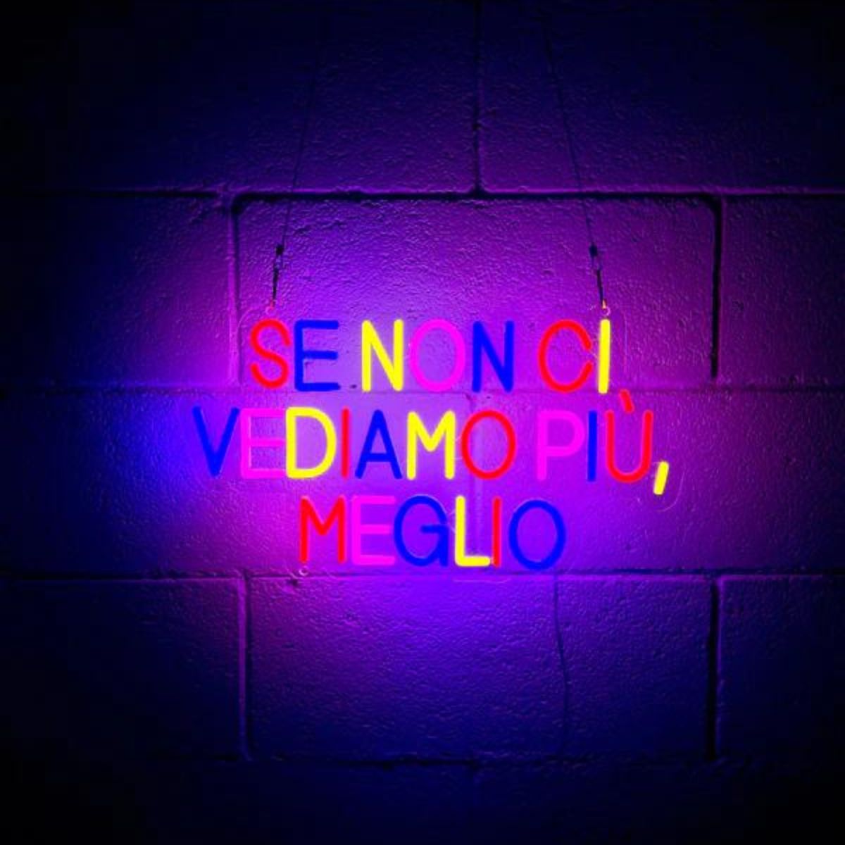 Scritta led che recita "SE NON CI VEDIAMO PIÙ, MEGLIO".