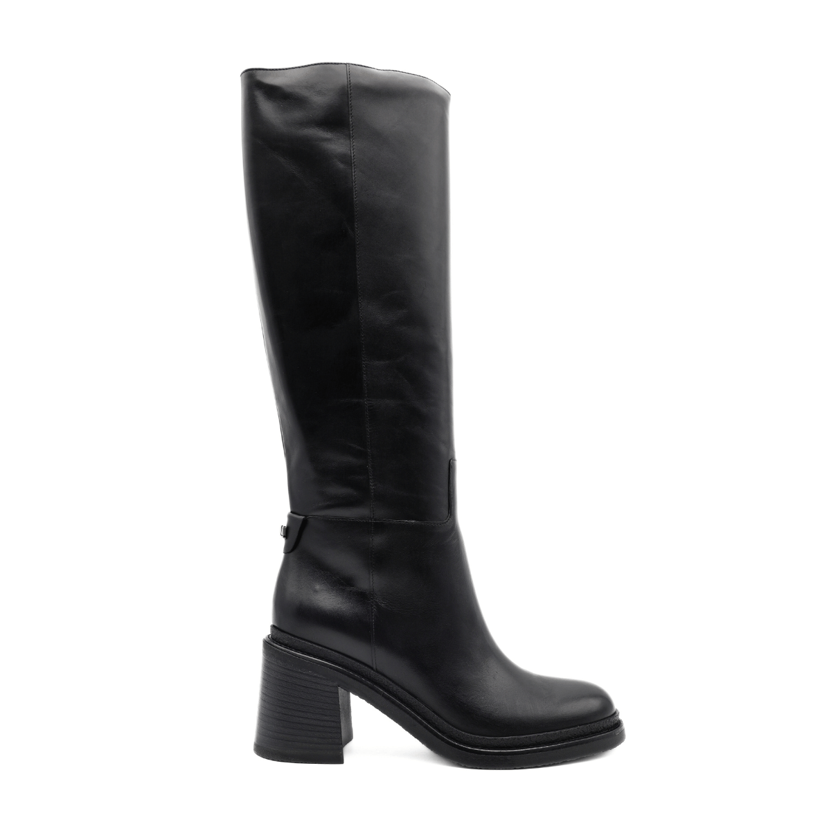 Stivale da donna di LORENZO MARI in pelle nero. Interno foderato in pelle con morbido sottopiede non estraibile. Tubolare. Chiusura con mezza zip. Suola in gomma ruvida antiscivolo.