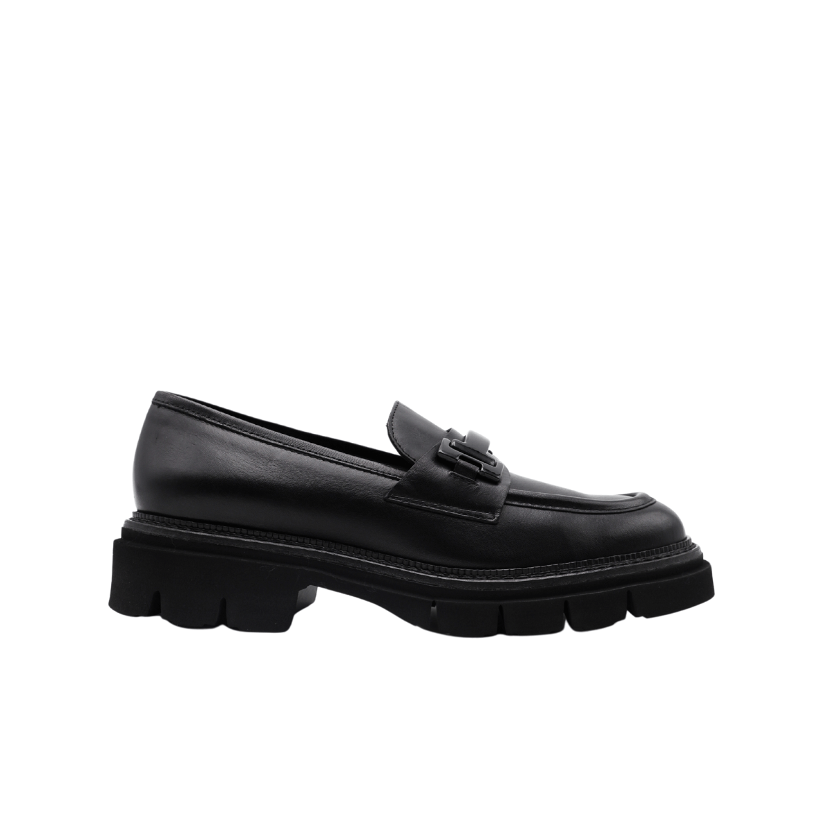 Mocassino donna di LUCA GROSSI. Realizzato in pelle nappa nera e morsetto decorativo, Internamente foderato, morbido soffietto nel sottopiede rifinito in pelle. Suola in gomma carrarmato. Calzatura ideata, disegnata e realizzata in Italia, prodotto made in Italy.