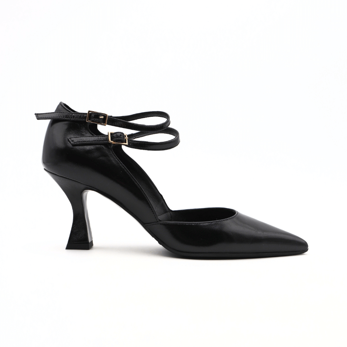 Indossa l'ultima tendenza della moda con le decolletè di MALÙ. Queste eleganti scarpe realizzate in pelle lucida nera con doppio cinturino in caviglia e tacco a rocchetto. Interno e sottopiede, non estraibile, in pelle. Un design sofisticato con una suola in gomma.